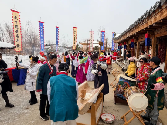 活動(dòng)推出開放式沉浸式文旅體驗(yàn)線路,將刀畫、松花石雕刻等非遺技藝展演融入其中,設(shè)置了冰上套圈贏年貨、簡易冰壺等6大全年齡段友好型冰雪趣味項(xiàng)目,同時(shí)推出殺年豬、鐵鍋燉等本土特色美食,明太魚坊、粉條坊等特色業(yè)態(tài)集中亮相,更有手磨咖啡搭配現(xiàn)烤打糕的特色休閑體驗(yàn),為游客增添新春暖意。活動(dòng)當(dāng)天邀請了100余名網(wǎng)絡(luò)達(dá)人深度探訪打卡,累計(jì)發(fā)布宣傳作品200余條,單直播間最高瀏覽量突破500萬。春節(jié)期間,活動(dòng)已接待游客近3萬人次,獲得各級官方媒體及新媒體平臺重點(diǎn)宣推,相關(guān)內(nèi)容總播放量破千萬,實(shí)現(xiàn)線上線下流量雙向豐收。