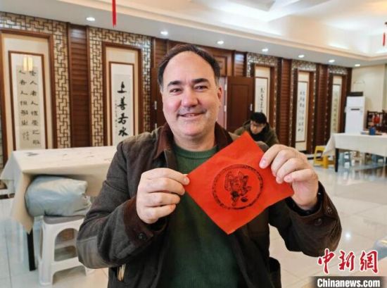 2月15日(大年初六),達(dá)奇在長春文廟博物館參與迎新春拓印福字活動。 (受訪者供圖)