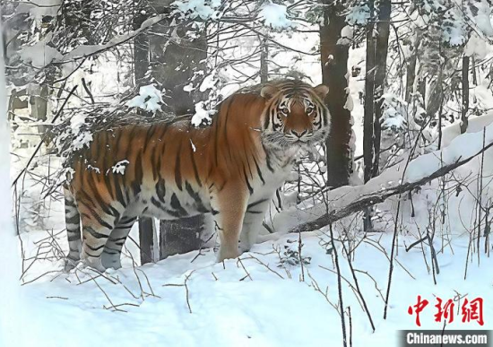 12月3日,長(zhǎng)白山保護(hù)區(qū)工作人員發(fā)現(xiàn)的野生東北虎,拍攝時(shí)與老虎距離不到10米。 (吉林省林業(yè)和草原局供圖)