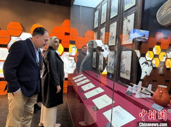 4月14日,吉林長(zhǎng)春,國(guó)際友人在長(zhǎng)影舊址博物館了解中國(guó)電影發(fā)展歷史!≈行律缬浾 張瑤 攝