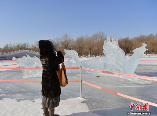 吉林長春:“龍鳳呈祥”巨型冰雕吸引市民
