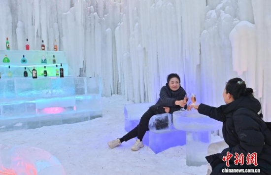 吉林長春:冰瀑“酒吧”吸引游客打卡