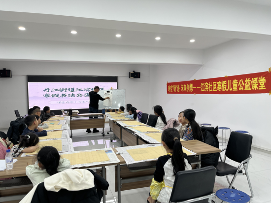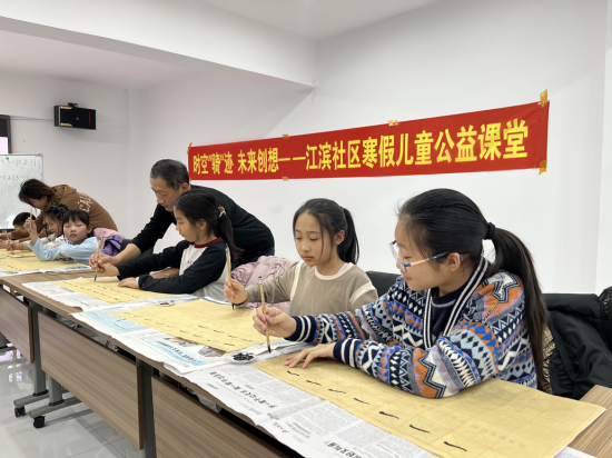 翰墨飄香潤(rùn)育童心,筆走龍蛇書寫成長(zhǎng)。江濱社區(qū)黨委以傳承中華優(yōu)秀傳統(tǒng)文化為抓手,依托書法公益課堂搭建文化傳承平臺(tái),以筆墨傳文化、以書香育新人。一是名師領(lǐng)航夯基礎(chǔ)。邀請(qǐng)轄區(qū)書法教師段老師現(xiàn)場(chǎng)授課,以專業(yè)教學(xué)助力孩子們感受書法魅力、傳承優(yōu)秀文化;二是循序漸進(jìn)長(zhǎng)才干。段老師從握筆姿勢(shì)、基本筆畫教起,聚焦楷書基礎(chǔ),通過(guò)示范指導(dǎo)、一對(duì)一糾正,幫助孩子們?cè)鷮?shí)掌握書寫技巧,培養(yǎng)持之以恒的韌勁、嚴(yán)謹(jǐn)認(rèn)真的態(tài)度、精益求精的追求;三是以書潤(rùn)心強(qiáng)自信。結(jié)合書寫春聯(lián)、福字等形式,與孩子們一同揮毫潑墨,讓孩子們?cè)诠P墨間體悟傳統(tǒng)文化的博大精深,在書寫中根植文化自信,在傳承中凝聚民族力量,推動(dòng)中華優(yōu)秀傳統(tǒng)文化在青少年中薪火相傳。