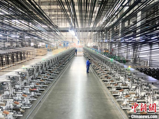 工人正在碳纖維生產(chǎn)線忙碌,這一新材料可應(yīng)用于無人機制造!〖质形麄鞑抗﹫D