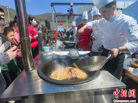 廚師現(xiàn)場(chǎng)制作開(kāi)江魚(yú)邀游客品嘗。 石洪宇/攝