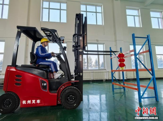 中新網(wǎng)吉林11月12日電 (記者 石洪宇)16歲的劉紀(jì)博穩(wěn)坐叉車駕駛室,目光緊盯叉齒。他輕推操縱桿,叉齒精準(zhǔn)探向貨架上的紅燈籠細(xì)鏈,輕輕一勾,紅燈籠被摘下。隨后,又通過類似步驟將燈籠掛回貨架。