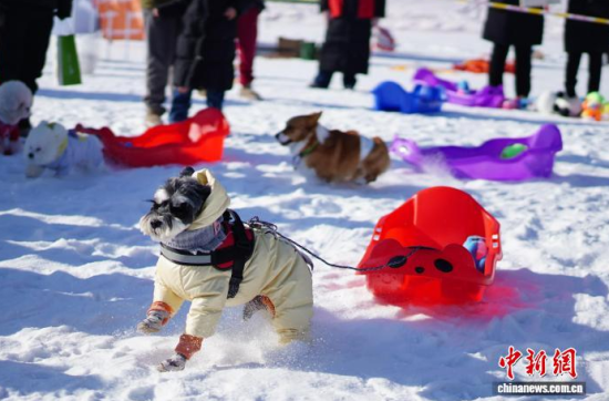 賽事設(shè)置“雪橇運(yùn)雪寶”“小狗短跑競速”“人寵拔河”等項(xiàng)目,兼具競技性與趣味性。