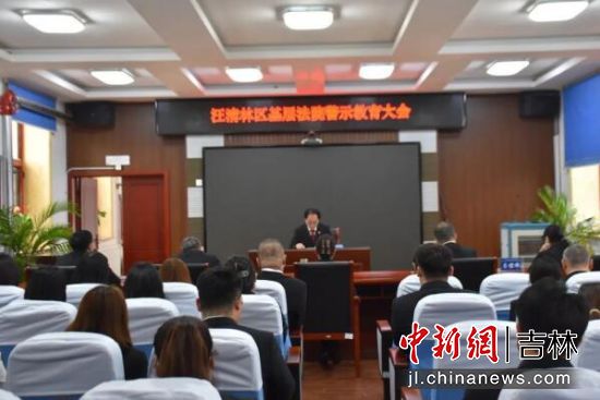 中新網吉林新聞3月24日電 (譚偉旗 代金元)近日,汪清林區(qū)基層法院召開警示教育大會,會議由該院政治部副主任郭延鐘主持,該院全體干警參加會議。