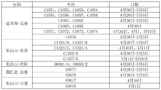 記者從延吉車務(wù)段了解到,今年“五一”假期鐵路運輸期限自4月29日至5月6日止,為期8天。為滿足廣大旅客出行需求,該段科學(xué)調(diào)配運力,優(yōu)化列車開行方案,計劃加開長春、沈陽等方向旅客列車14.5對,其中普速列車2對、高鐵列車12.5對。