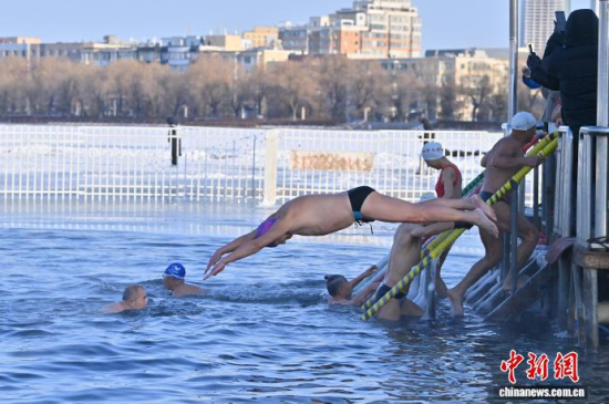 吉林長(zhǎng)春:冬泳愛好者冰湖暢游迎新年