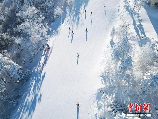 11月30日,一場降雪過后,吉林北大湖滑雪場現(xiàn)高山霧凇。漫山遍野的樹木皆被冰晶裹挾,潔白如玉,滑雪愛好者如置身雪國。北大湖滑雪場高山霧凇美景如畫。(記者 蒼雁/攝)