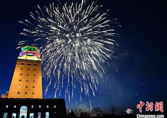 龍虎閣煙花綻放。張瑤 攝