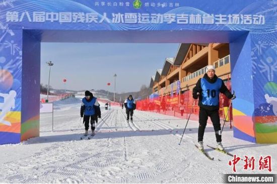 1月23日,吉林長春,運動員在比賽中激烈比拼。當天,第八屆中國殘疾人冰雪運動季冬季特奧項目推廣活動暨吉林省主場活動在長春市蓮花山滑雪場舉行。本次活動設有特奧越野滑雪、特奧雪鞋走2個大項、6個類別的比賽,吸引來自中國各地140名運動員參賽。(完)