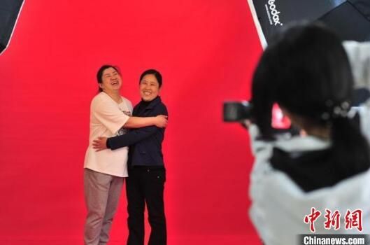 市民正在拍攝家庭照。市民正在拍攝家庭照。一對拍照的姐妹相擁而笑。攝影師在為市民設(shè)計造型。攝影師在為市民設(shè)計造型。