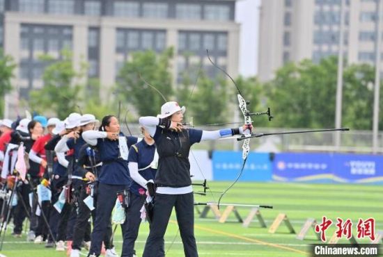 7月3日,吉林遼源,參賽選手參加女子個人70米輪賽。 當天,2024年全國射箭巡回賽暨全國射箭分站賽第二站在雨中開弓。來自全國各地的258名運動員在男子反曲弓個人、女子反曲弓個人、男子反曲弓團體、女子反曲弓團體、反曲弓混合團體5個競賽項目上一較高低。(中新社記者 張瑤 攝)