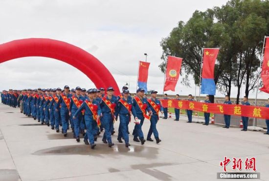8月1日,吉林長春,新飛行學(xué)員正在列隊出場。8月1日到2日,中國空軍使用多架運(yùn)-20,從全國多個登機(jī)點,集中運(yùn)送新錄取的飛行學(xué)員到空軍航空大學(xué)報到。(中新社記者 張瑤 攝)