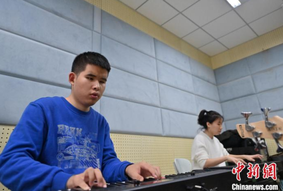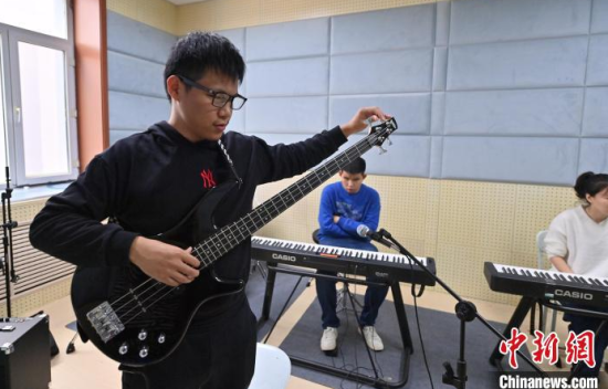 11月14日,吉林長(zhǎng)春,“逐暗逐光”樂(lè)隊(duì)成員在交流排練細(xì)節(jié)。長(zhǎng)春大學(xué)特教學(xué)院有一支名叫“逐暗逐光”的樂(lè)隊(duì),樂(lè)隊(duì)成員都是視障學(xué)生。他們因音樂(lè)相聚在一起,用音樂(lè)去驅(qū)逐黑暗追逐光明。中新社記者 張瑤 攝