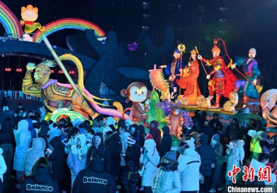 吉林萬科松花湖冰雪秀:雪餅猴VS黑悟空