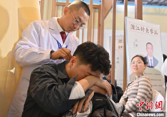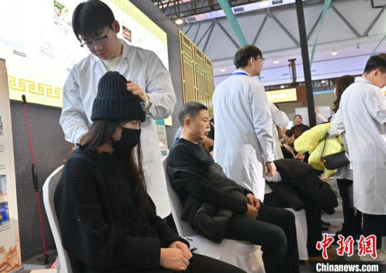 12月7日,吉林長春,市民在體驗推拿。當天,2024長春國際醫(yī)藥健康產業(yè)博覽會開幕,現(xiàn)場設有中醫(yī)藥文化體驗展區(qū)、中醫(yī)流派特色療法體驗館,吸引大批市民前來觀展、體驗。中新社記者 張瑤 攝