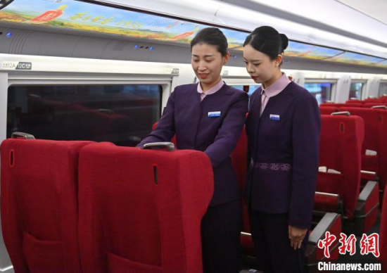 1月7日,吉林長春,“動姐”在進行安全知識培訓。春運臨近,為提升服務品質,沈陽局集團公司長春客運段動車一隊的乘務員們利用業(yè)余時間開展基礎禮儀、職業(yè)形象、服務技巧等內(nèi)容的培訓。中新社記者 張瑤 攝