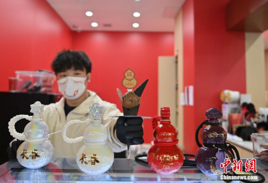 3月12日,在長春一家商場的中藥甜品店,工作人員在舀取中藥冰淇淋。這家中藥甜品店將刺五加、人參、靈芝等中藥與傳統(tǒng)甜品相結(jié)合,推出了中藥冰淇淋、中藥茶飲等產(chǎn)品,吸引大量民眾體驗。(中新社記者 張瑤/攝)
