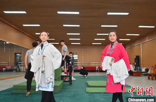 4月10日,在位于吉林省長春市的吉林省吉劇團,安靜芳(左)在為青年演員說戲。近期,中國文化和旅游部公布第六批國家級非物質(zhì)文化遺產(chǎn)代表性傳承人名單,吉劇代表性傳承人安靜芳位列其中。入行超過四十年的她,曾塑造了樊梨花、鐵扇公主等眾多經(jīng)典角色。近年來,她退居幕后潛心授藝培育新人,以匠心守護這門年輕劇種的傳承發(fā)展。中新社記者 張瑤 攝