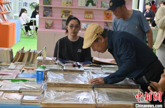 5月16日,吉林長(zhǎng)春,市民在第二屆東北圖書交易博覽會(huì)上選購(gòu)舊書。本屆東北書博會(huì)首次設(shè)立“舊書新知”(東北專場(chǎng)),匯聚了近千種古籍舊書、名家墨跡手稿、特裝書等,吸引不少市民關(guān)注選購(gòu)。中新社記者 張瑤 攝