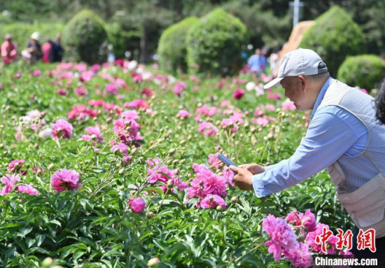 6月11日,在長春市長春公園內,六萬余株芍藥花競相綻放,吸引了眾多游客前來觀賞。中新社記者 張瑤 攝