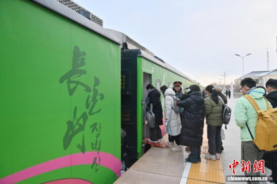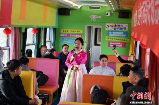 12月3日,直達長白山的龍井民俗旅游專列鳴笛啟程,開啟冬日樂賞冰雪之旅。該專列融合“冰雪+民俗”雙重主題,每節(jié)車廂各成一道風景,絢麗多彩的民俗風情貫穿全程。車窗外,壯美的林海雪原不斷掠過,吸引游客觀賞。據(jù)悉,該專列將在每周末往返兩地。中新社記者 張瑤 攝