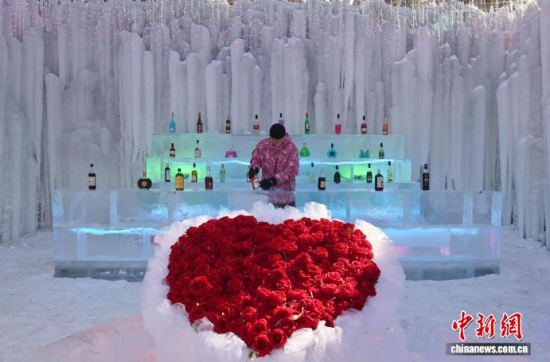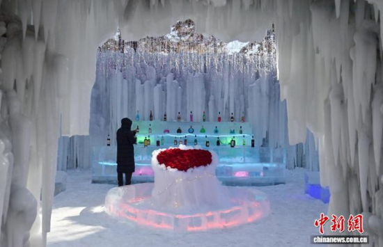 2月3日,位于長(zhǎng)春冰川幻境冰雪樂園內(nèi)的一座由冰瀑打造而成的特色“酒吧”,吸引了大量游客前來打卡體驗(yàn)。酒吧內(nèi)部以冰雪為主題,晶瑩剔透的冰沙發(fā)與冰吧臺(tái)相互映襯,營(yíng)造出夢(mèng)幻般的冰雪世界氛圍。中新社記者 張瑤 攝