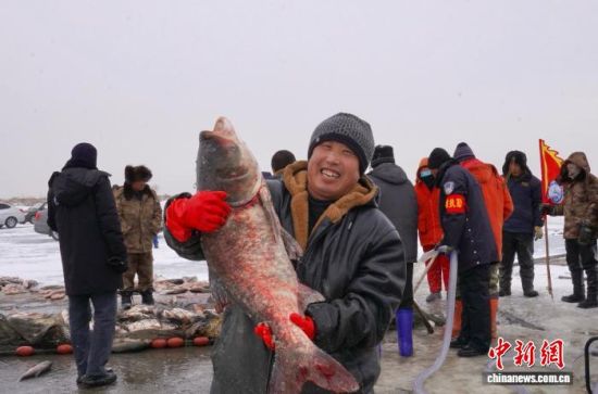 鎮(zhèn)賚哈爾淖冬捕啟動 首網捕獲鮮魚2萬余斤